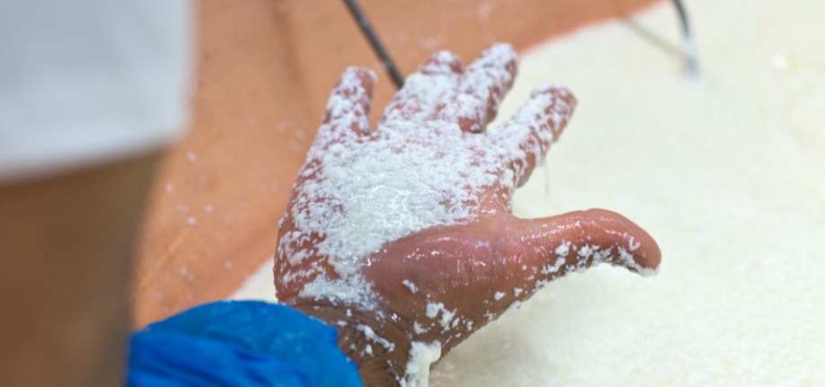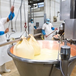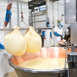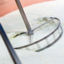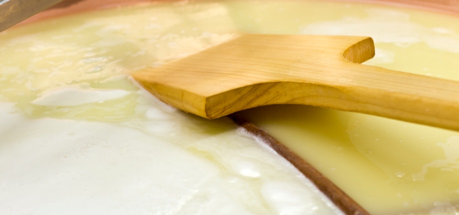 Il latte lavorato in caldere di rame è composto da una parte di latte affiorato naturalmente e da una parte da latte intero, con lo scopo di ottenere un prodotto dalle pregiate qualità organolettiche.